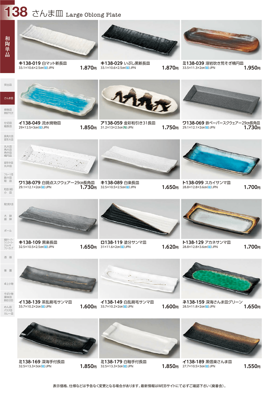 | イ138-149 | 白乱刷毛サンマ皿 | 上代 1,600円(税抜) 卸値 881円(税抜) (45%OFF) | ||
