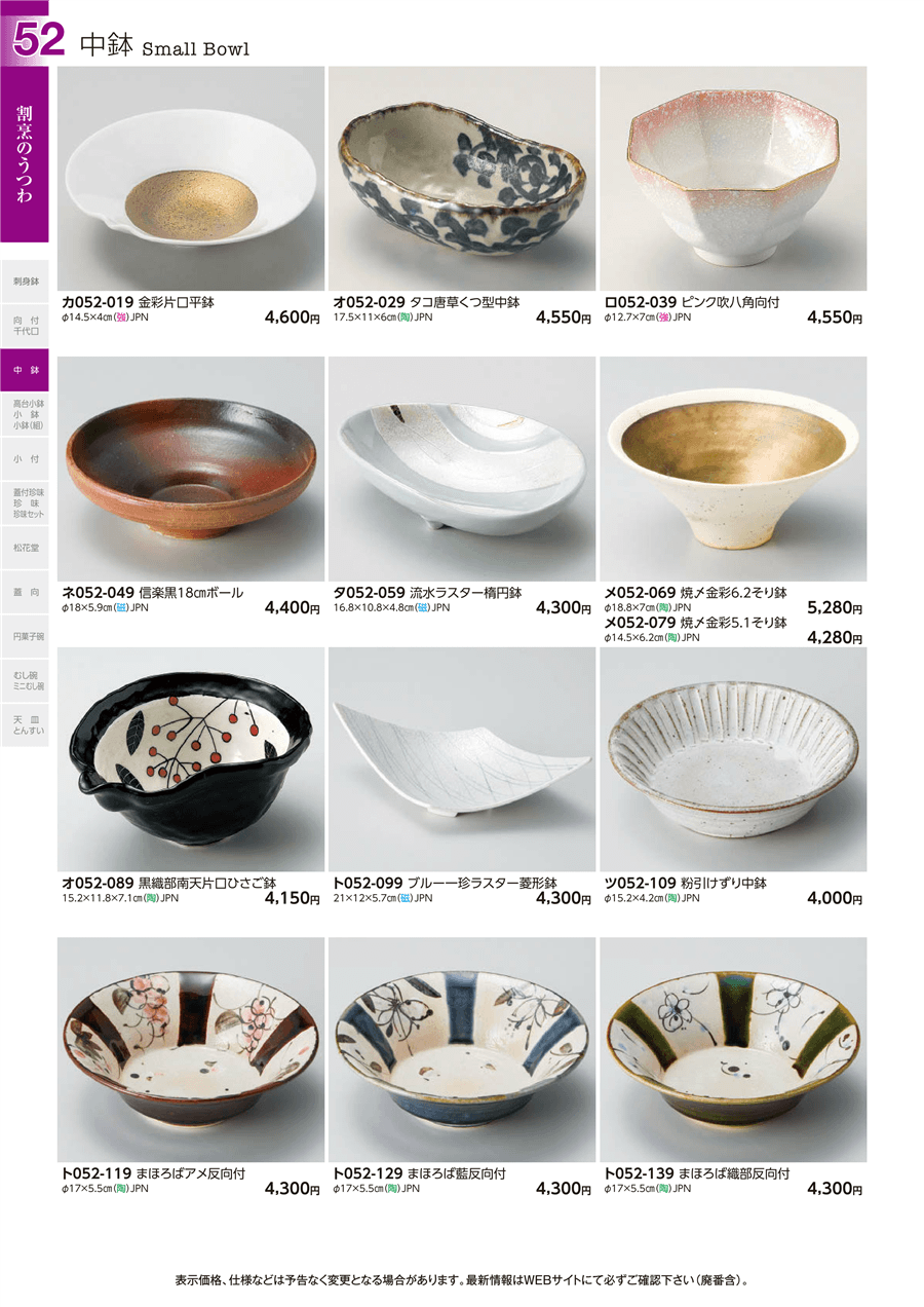 | 原料価格の急激な値上がりにより、画像記載の価格から更新されている場合がございます。 また価格の更新が完了していない商品もございますので、現行の価格は見積もりをもってご報告申し上げます。 | ||||