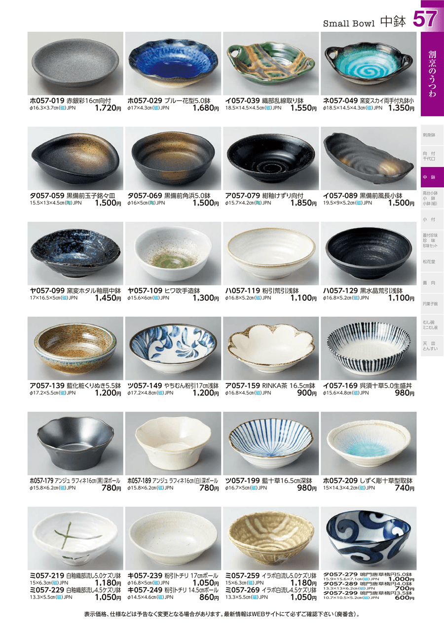 | ミ057-219 | 白釉織部流し5.0ケズリ鉢 | 上代 1,180円(税抜) 卸値 649円(税抜) (45%OFF) | ||