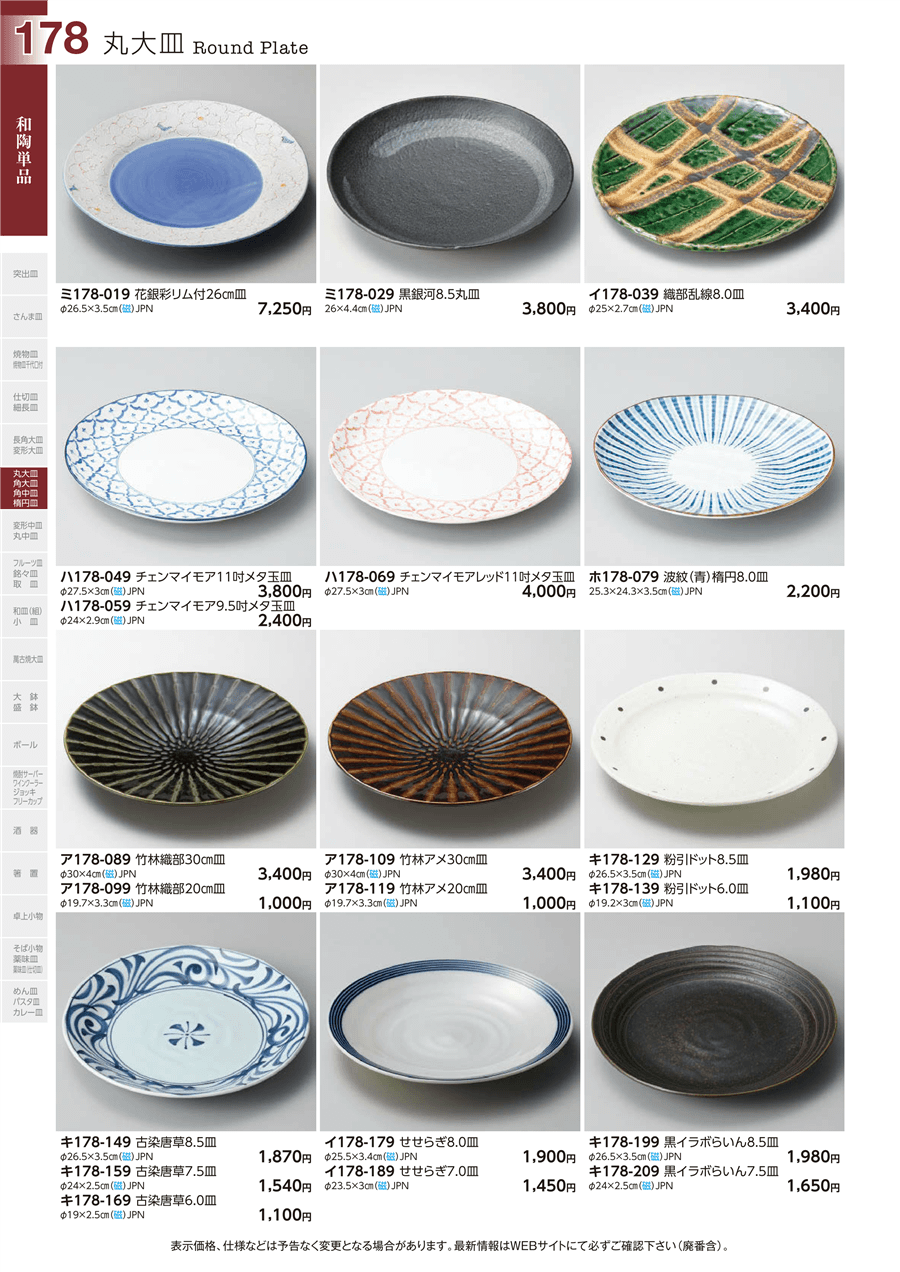 | イ178-179 | せせらぎ8.0皿 | 上代 1,900円(税抜) 卸値 1,045円(税抜) (45%OFF) | ||