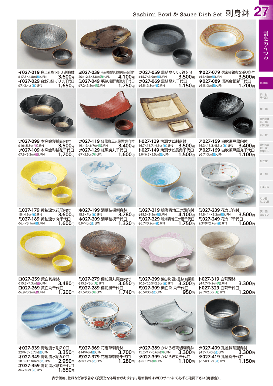 | 原料価格の急激な値上がりにより、画像記載の価格から更新されている場合がございます。 また価格の更新が完了していない商品もございますので、現行の価格は見積もりをもってご報告申し上げます。 | ||||