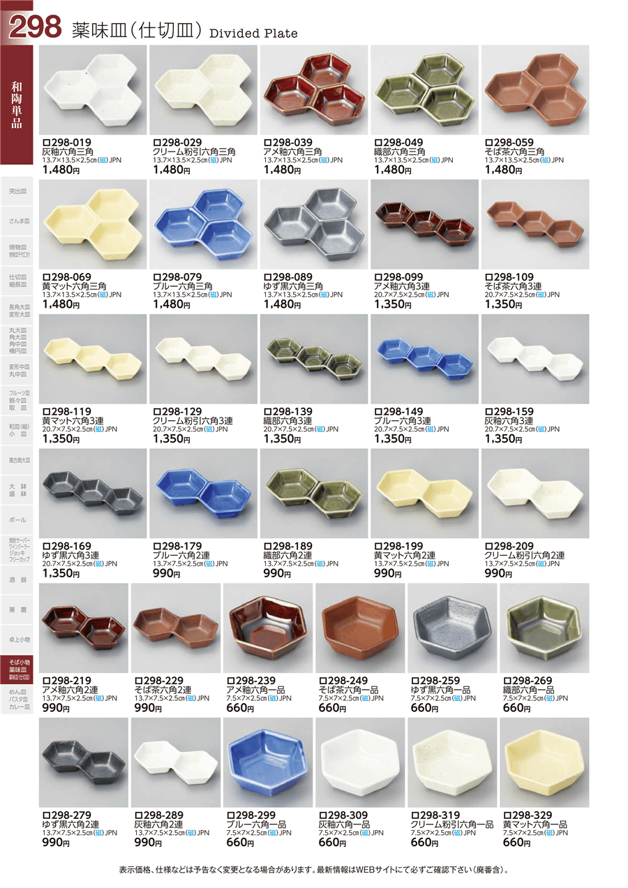 | ロ298-269 | 織部六角一品 | 上代 660円(税抜) 卸値 364円(税抜) (45%OFF) | ||