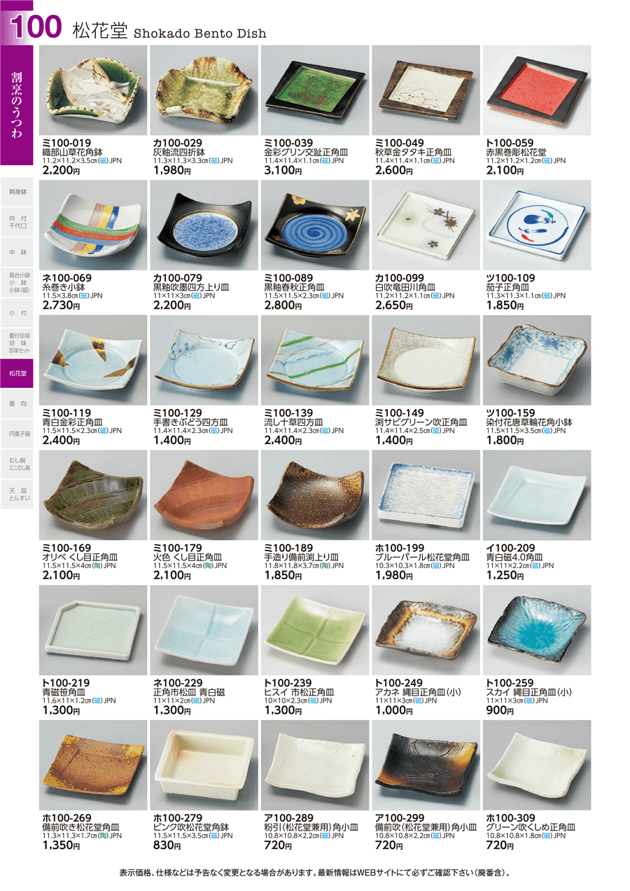 ホ100-269備前吹き松花堂角皿上代 1,350円(税抜)