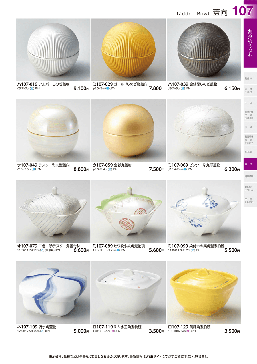 | ウ107-049 | ラスター彩丸型蓋向 | 上代 8,800円(税抜) 卸値 4,840円(税抜) (45%OFF) | ||