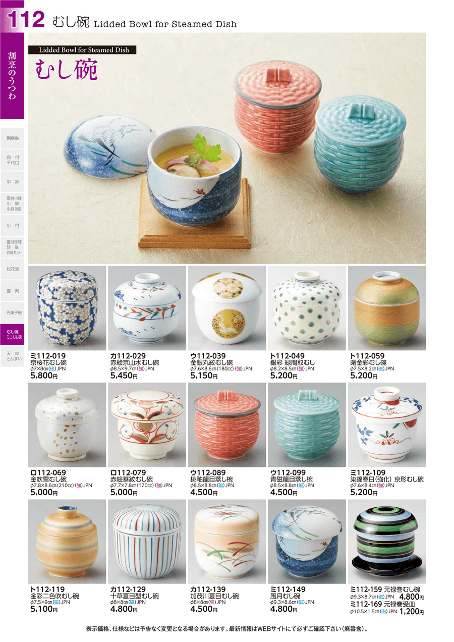 | ミ112-159 | 元禄巻むし碗 | 上代 4,800円(税抜) 卸値 2,640円(税抜) (45%OFF) | ||