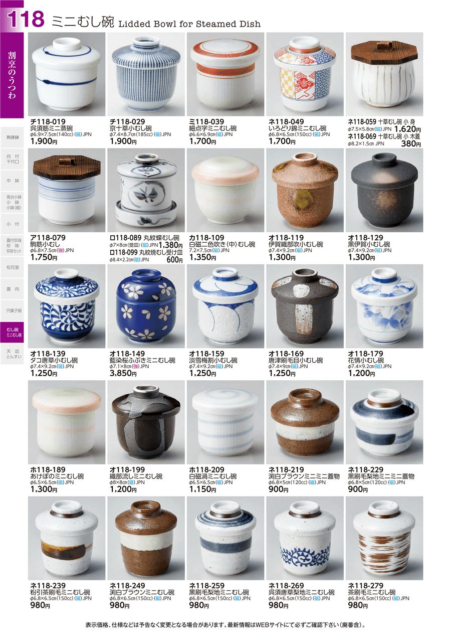 | ネ118-069 | 十草むし碗 小 木蓋 | 上代 380円(税抜) 卸値 210円(税抜) (45%OFF) | ||
