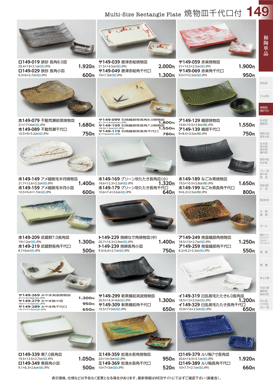 | ロ149-349 | 葵長角小皿 | 上代 500円(税抜) 卸値 275円(税抜) (45%OFF) | ||