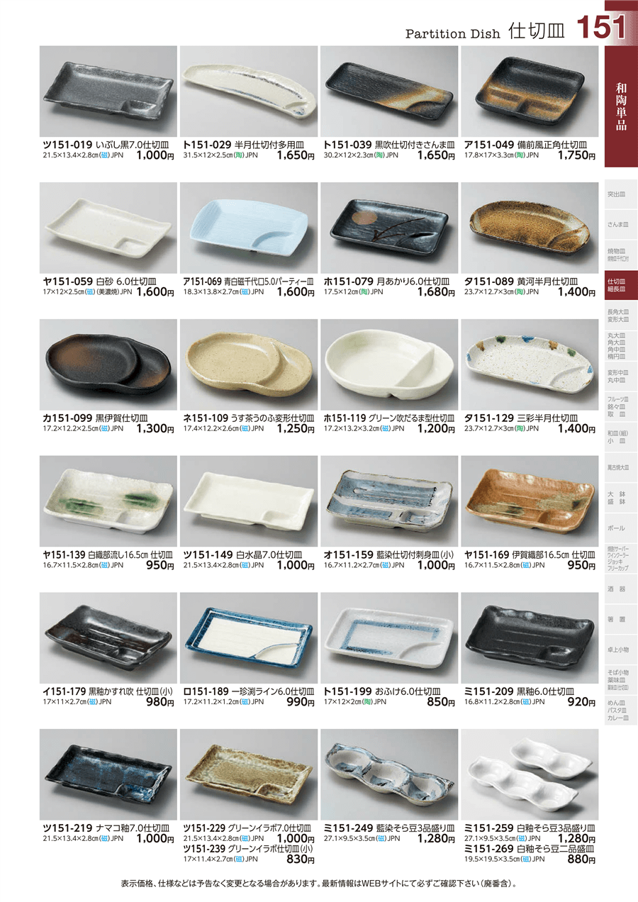 | ト151-029 | 半月仕切付多用皿 | 上代 1,650円(税抜) 卸値 908円(税抜) (45%OFF) | ||