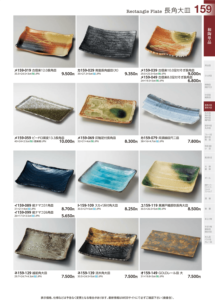 | ト159-109 | スカイ浜付角大皿 | 上代 8,250円(税抜) 卸値 4,538円(税抜) (45%OFF) | ||