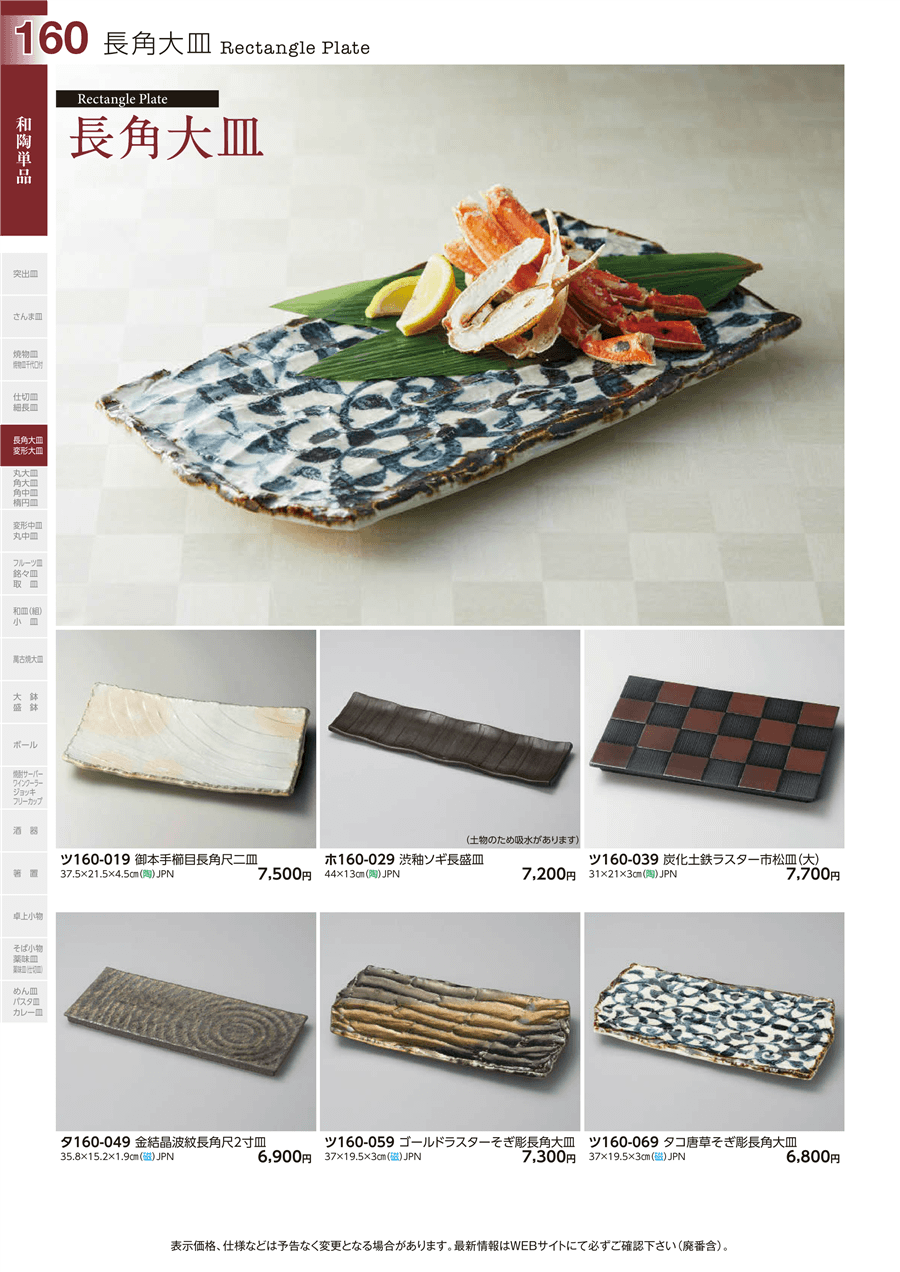 | ツ160-059 | ゴールドラスターそぎ彫長角大皿 | 上代 7,300円(税抜) 卸値 4,016円(税抜) (45%OFF) | ||