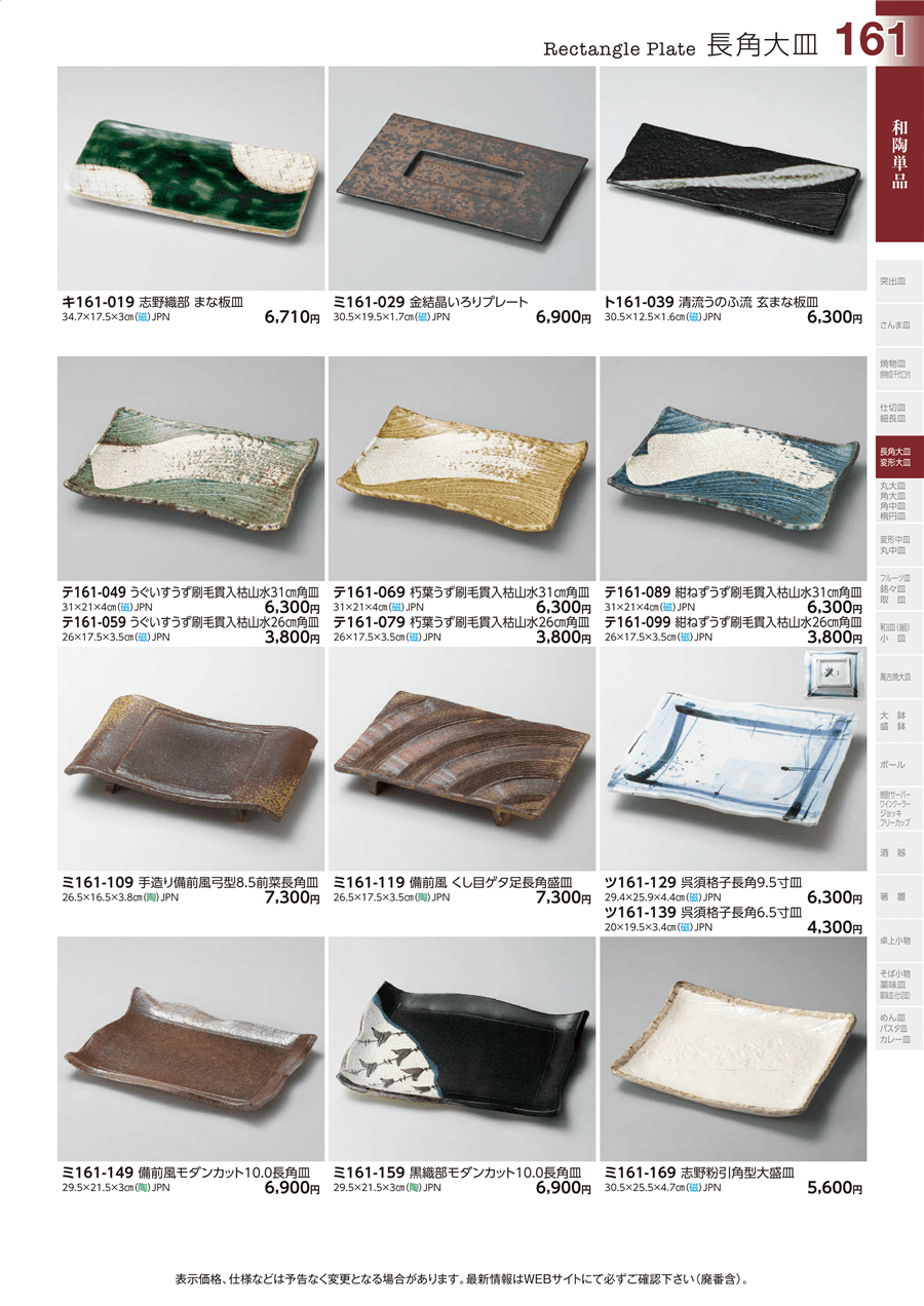 | ミ161-149 | 備前風モダンカット10.0長角皿 | 上代 6,900円(税抜) 卸値 3,796円(税抜) (45%OFF) | ||