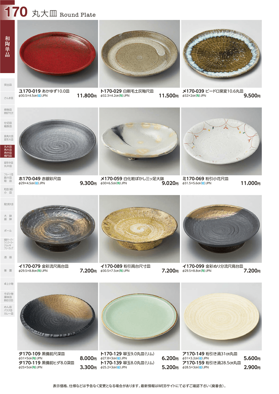 | ト170-129 | 翠玉9.0丸皿(リム) | 上代 6,200円(税抜) 卸値 3,411円(税抜) (45%OFF) | ||