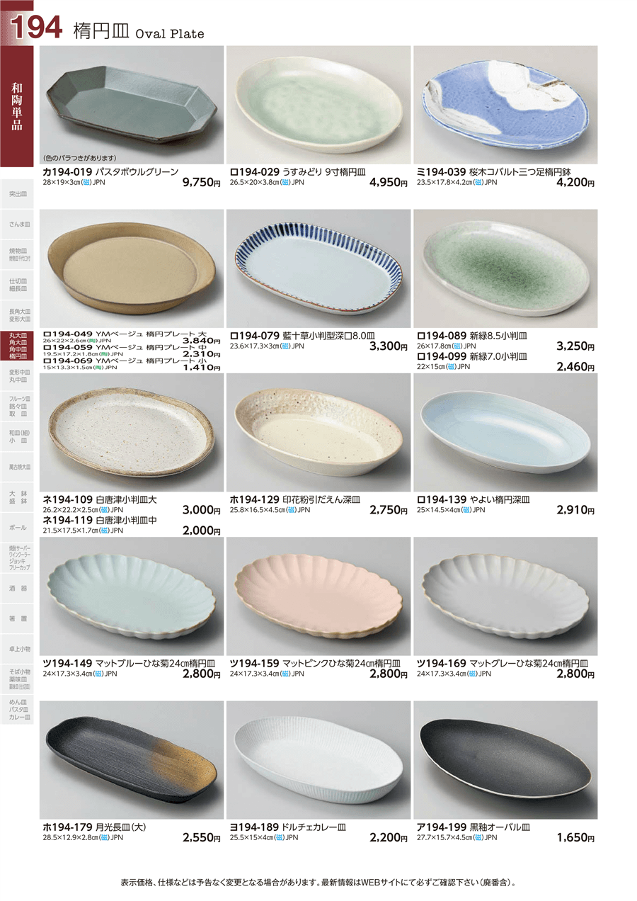| ロ194-139 | やよい楕円深皿 | 上代 2,910円(税抜) 卸値 1,601円(税抜) (45%OFF) | ||