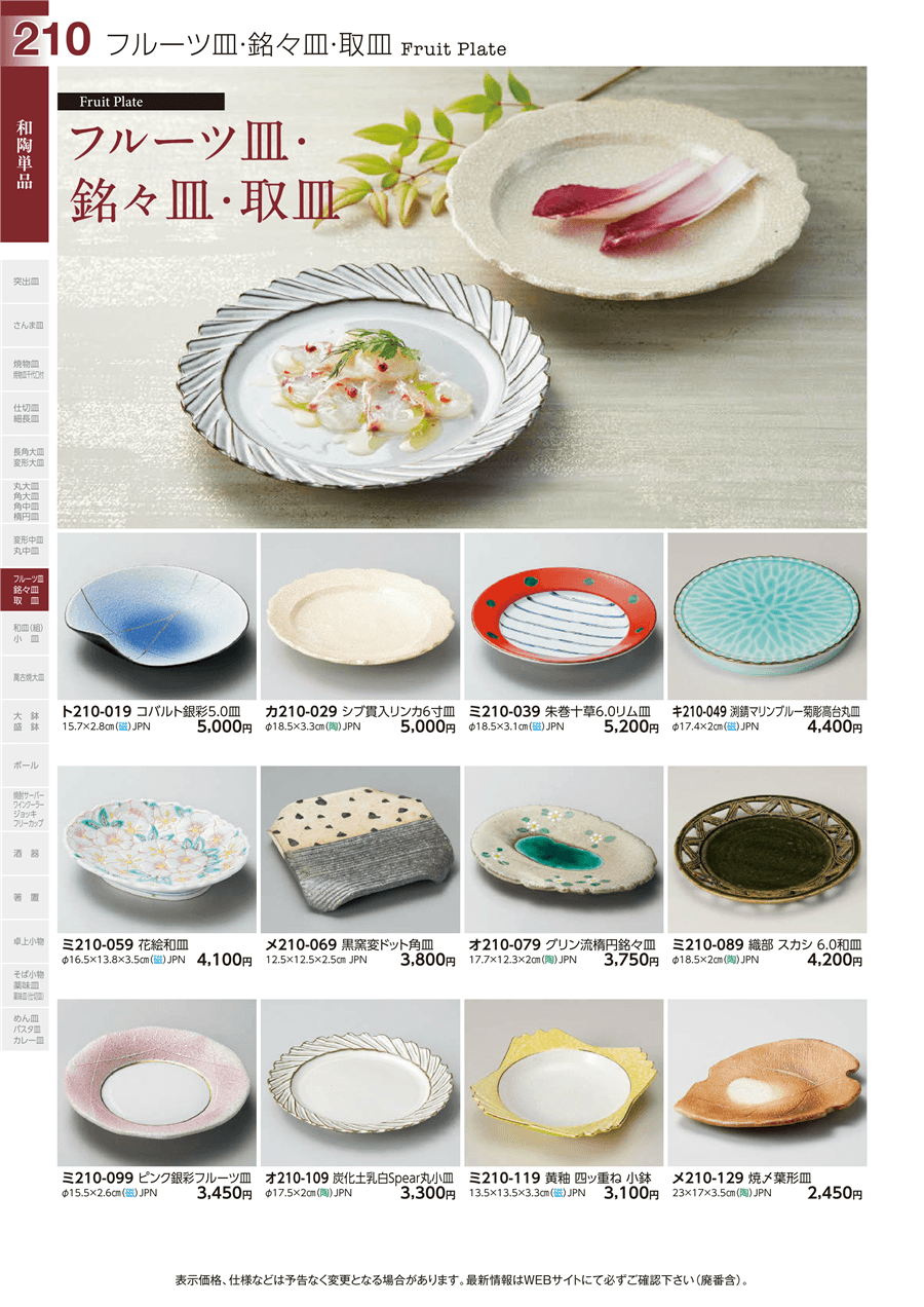 | 原料価格の急激な値上がりにより、画像記載の価格から更新されている場合がございます。 また価格の更新が完了していない商品もございますので、現行の価格は見積もりをもってご報告申し上げます。 | ||||