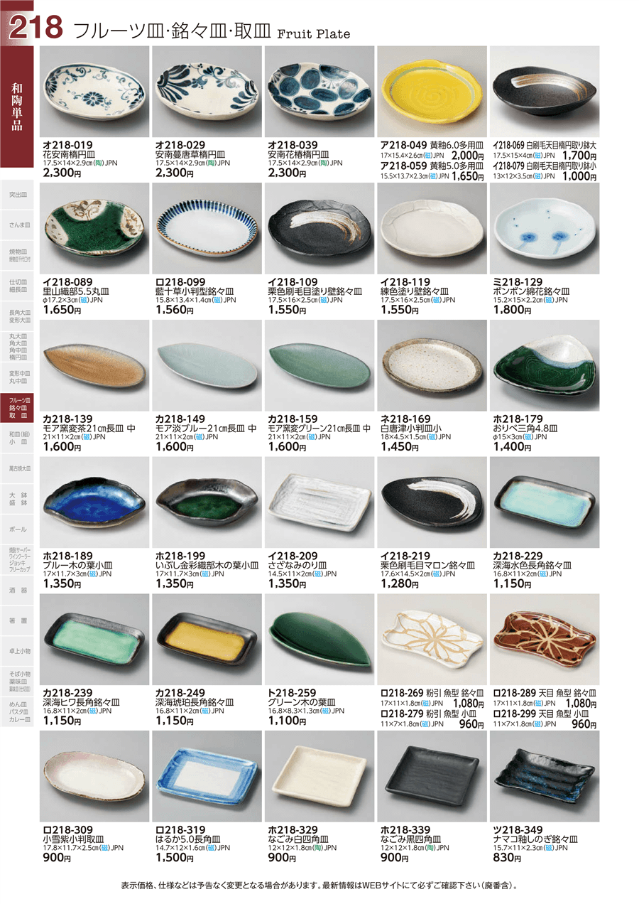 | ロ218-319 | はるか5.0長角皿 | 上代 1,500円(税抜) 卸値 826円(税抜) (45%OFF) | ||