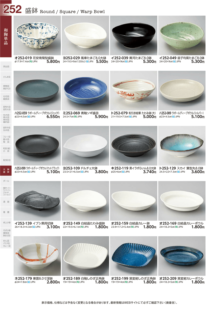| ヨ252-109 | ドルチェ大鉢 | 上代 3,800円(税抜) 卸値 2,090円(税抜) (45%OFF) | ||