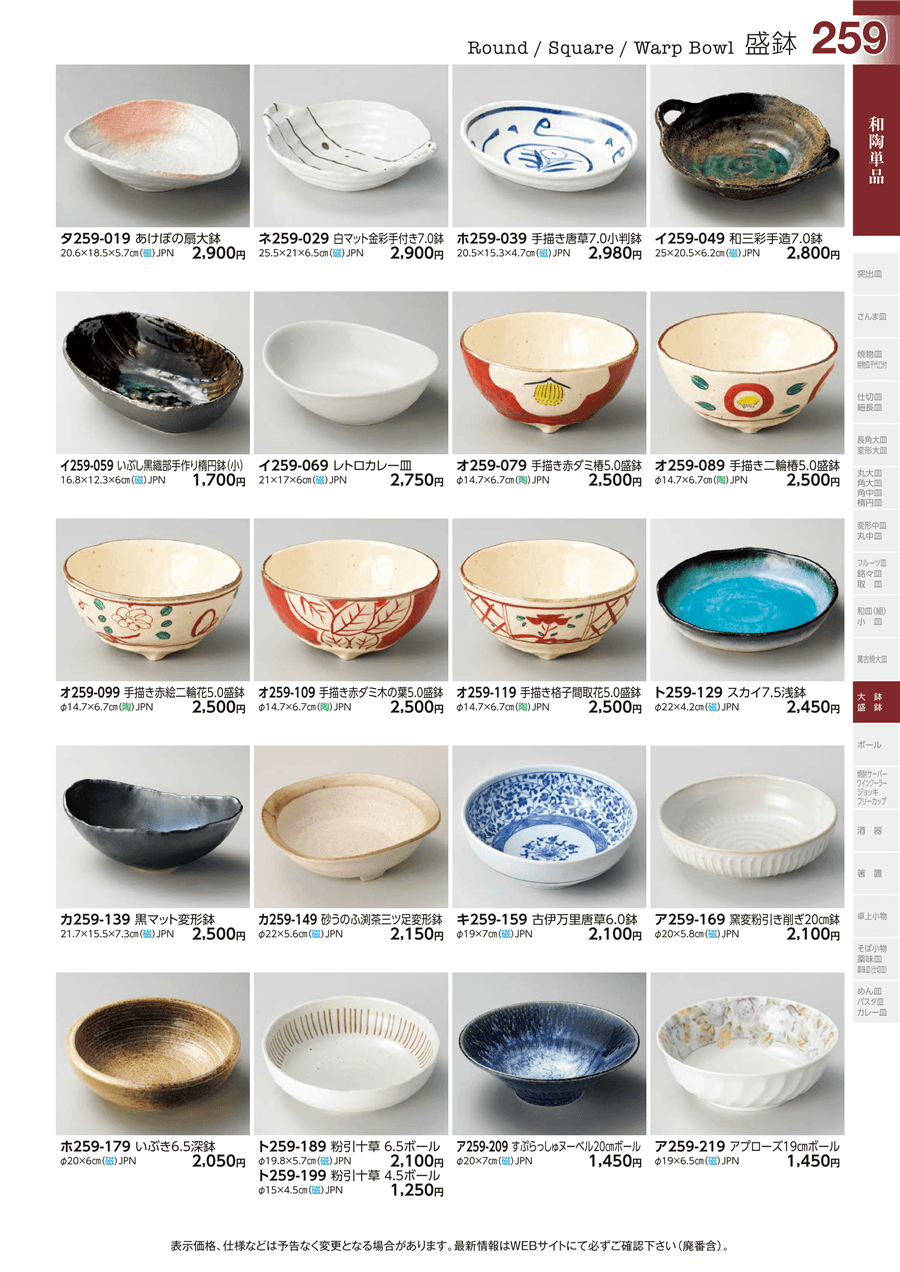 | イ259-049 | 和三彩手造7.0鉢 | 上代 2,800円(税抜) 卸値 1,541円(税抜) (45%OFF) | ||