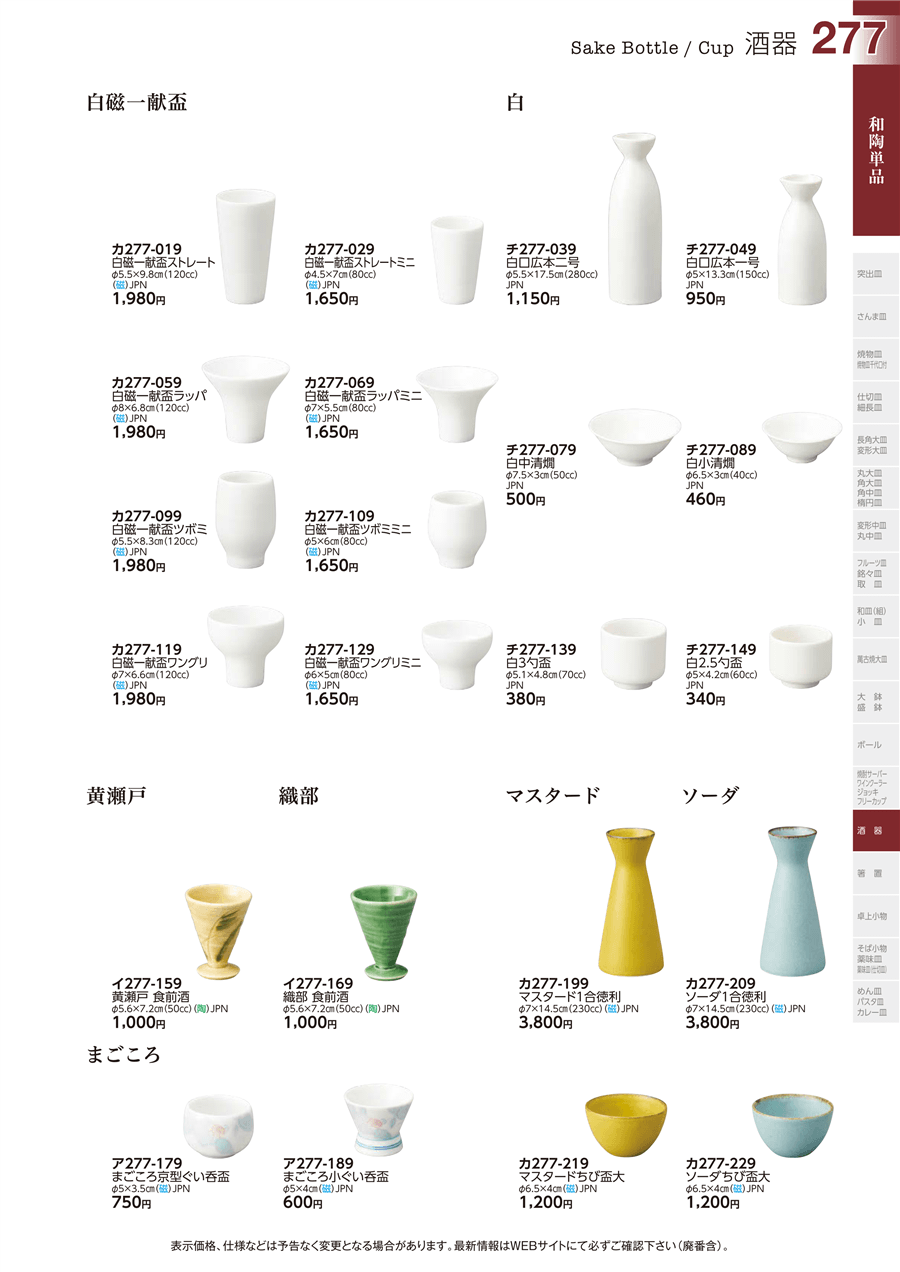 | チ277-149 | 白2.5勺盃 | 上代 340円(税抜) 卸値 188円(税抜) (45%OFF) | ||