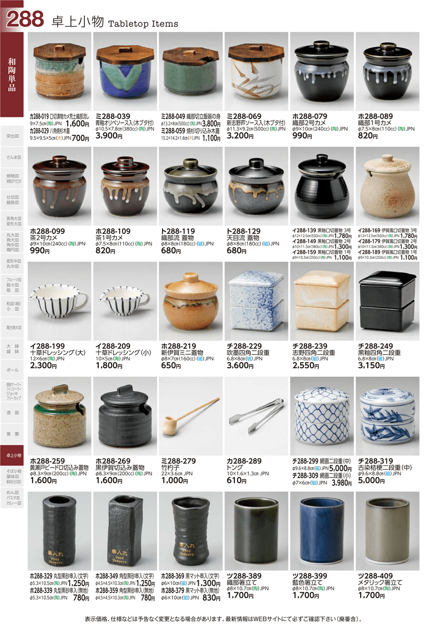 | ミ288-039 | 青釉オリベソース入(木ブタ付) | 上代 3,900円(税抜) 卸値 2,145円(税抜) (45%OFF) | ||
