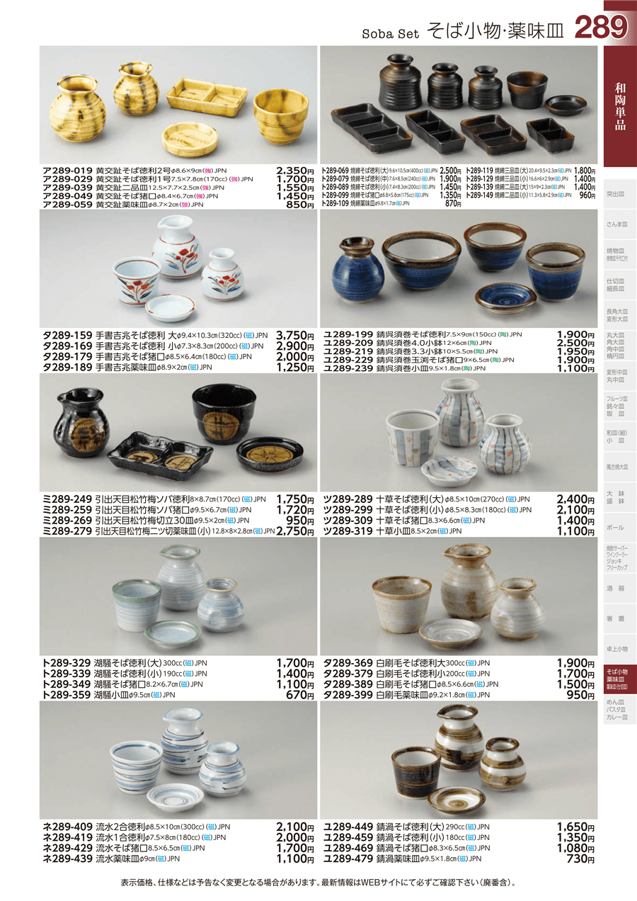 | ツ289-309 | 十草そば猪口 | 上代 1,400円(税抜) 卸値 771円(税抜) (45%OFF) | ||