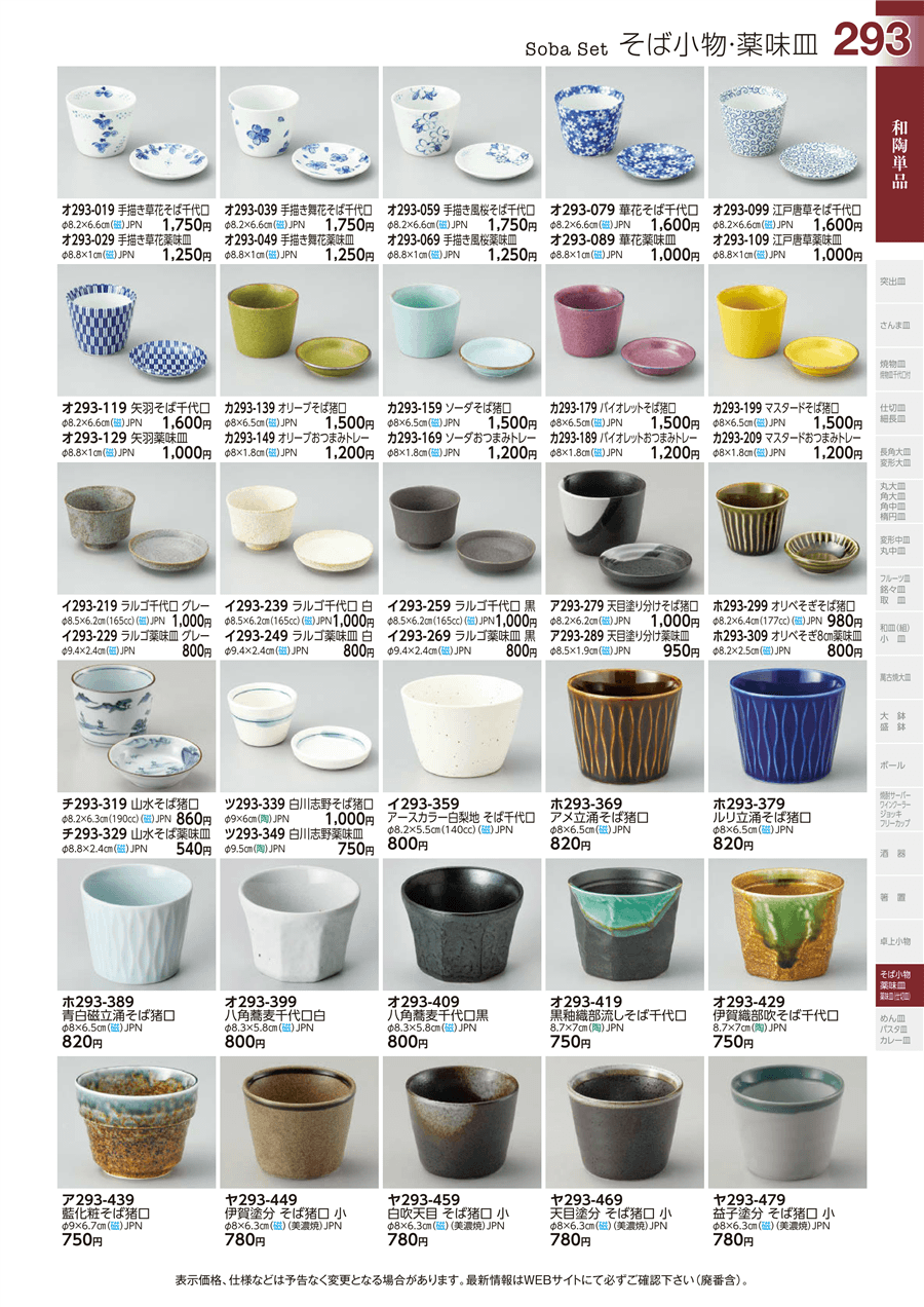 | ツ293-339 | 白川志野そば猪口 | 上代 1,000円(税抜) 卸値 550円(税抜) (45%OFF) | ||