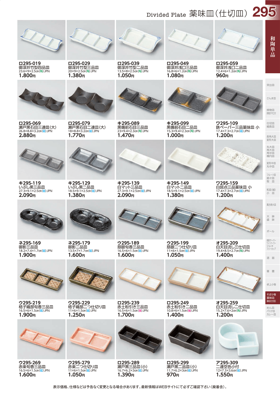 | ロ295-069 | 瀬戸黒石目三連皿(大) | 上代 2,880円(税抜) 卸値 1,585円(税抜) (45%OFF) | ||