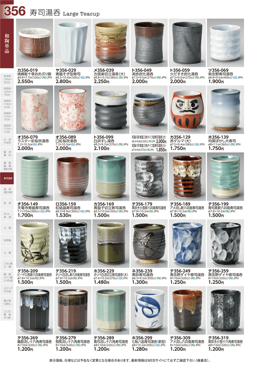 | ホ356-299 | 七転八起寿司湯呑(新型) | 上代 1,280円(税抜) 卸値 704円(税抜) (45%OFF) | ||
