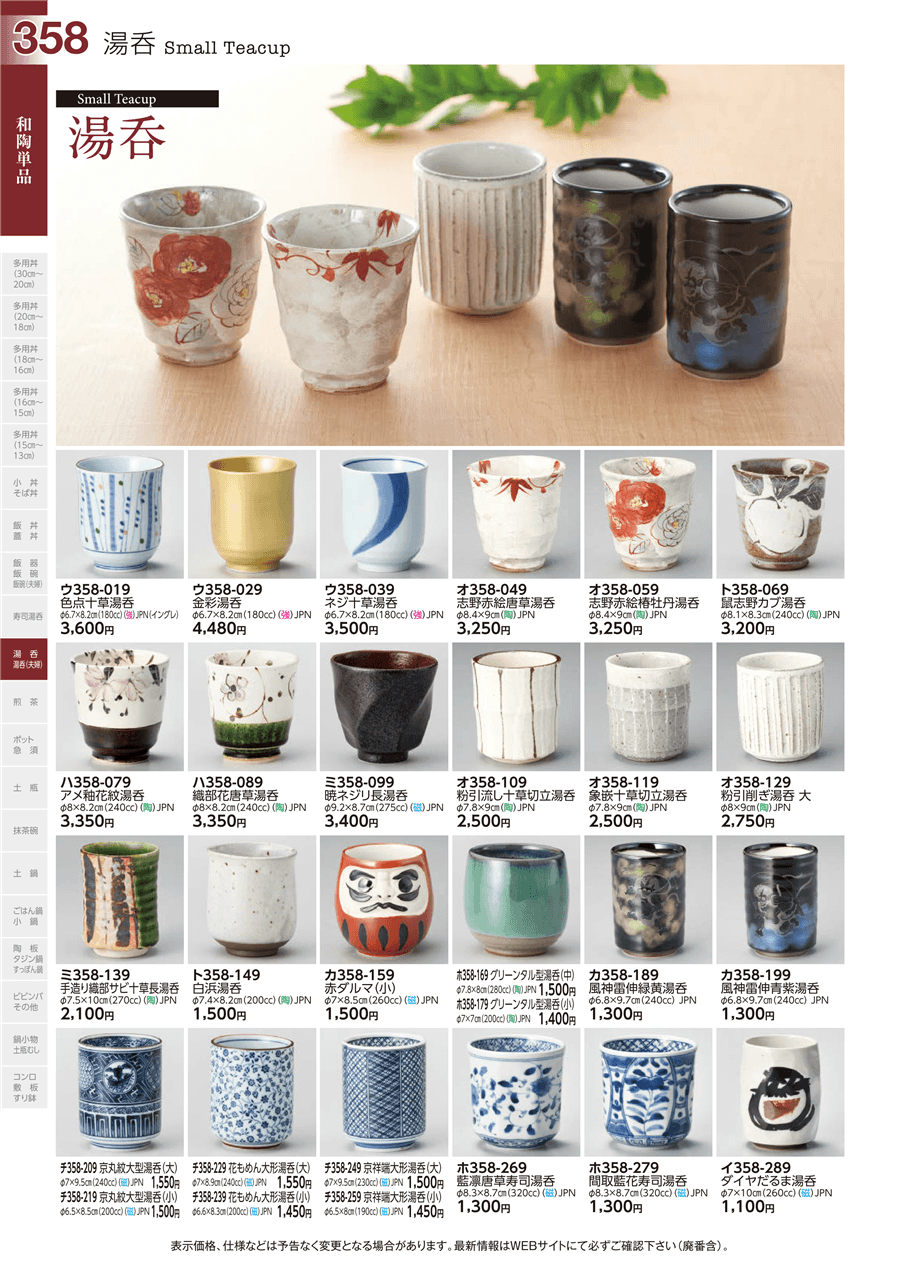 | ウ358-029 | 金彩湯呑 | 上代 4,480円(税抜) 卸値 2,464円(税抜) (45%OFF) | ||