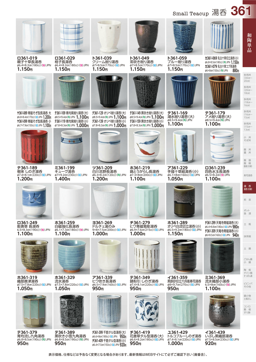 | ヨ361-269 | ドルチェ湯のみ | 上代 1,000円(税抜) 卸値 550円(税抜) (45%OFF) | ||