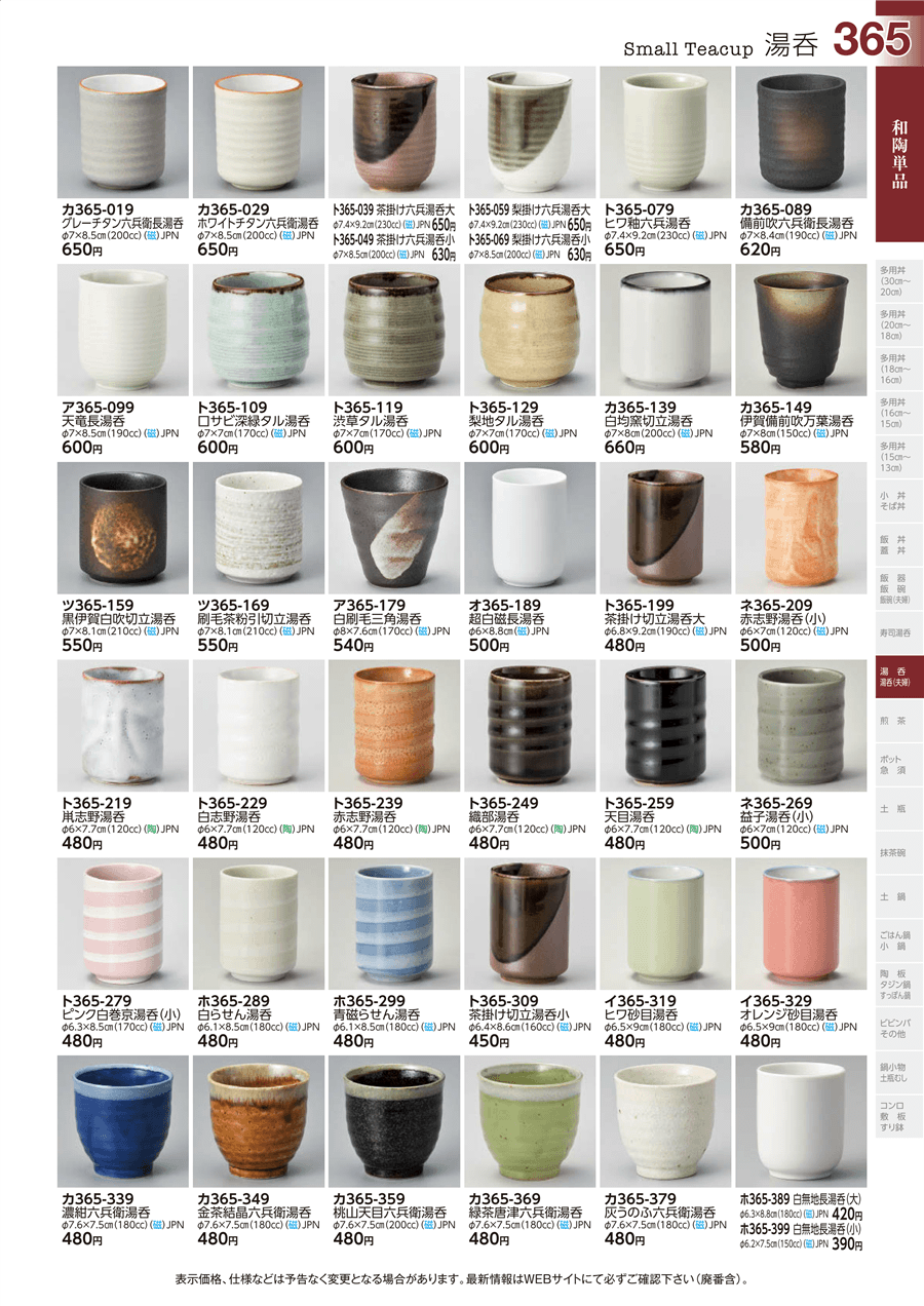 | ト365-049 | 茶掛け六兵湯呑小 | 上代 630円(税抜) 卸値 347円(税抜) (45%OFF) | ||
