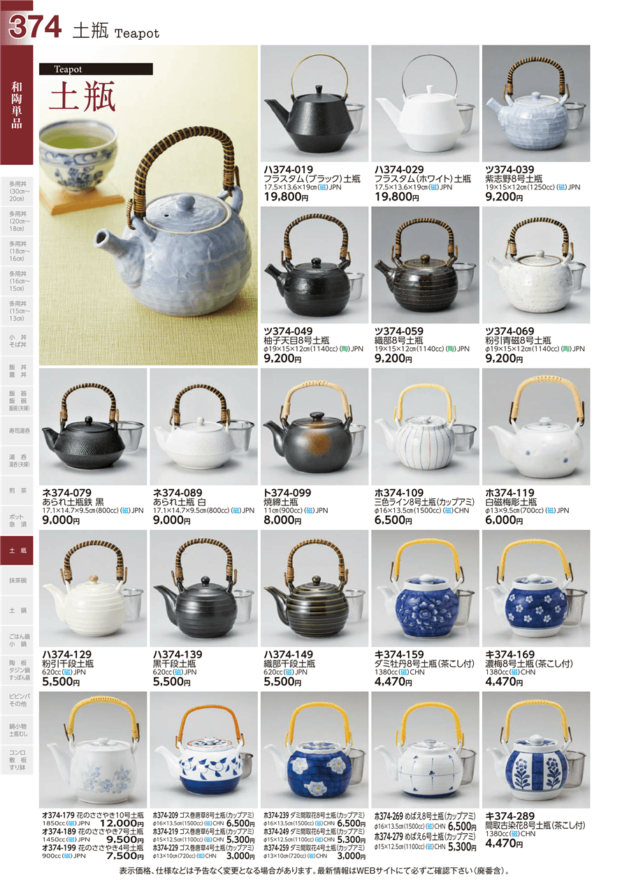 | キ374-159 | ダミ牡丹8号土瓶(茶こし付) | 上代 4,470円(税抜) 卸値 2,459円(税抜) (45%OFF) | ||