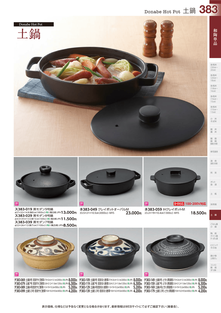 | ネ383-059 | IHクレイポットM | 上代 18,500円(税抜) 卸値 10,175円(税抜) (45%OFF) | ||