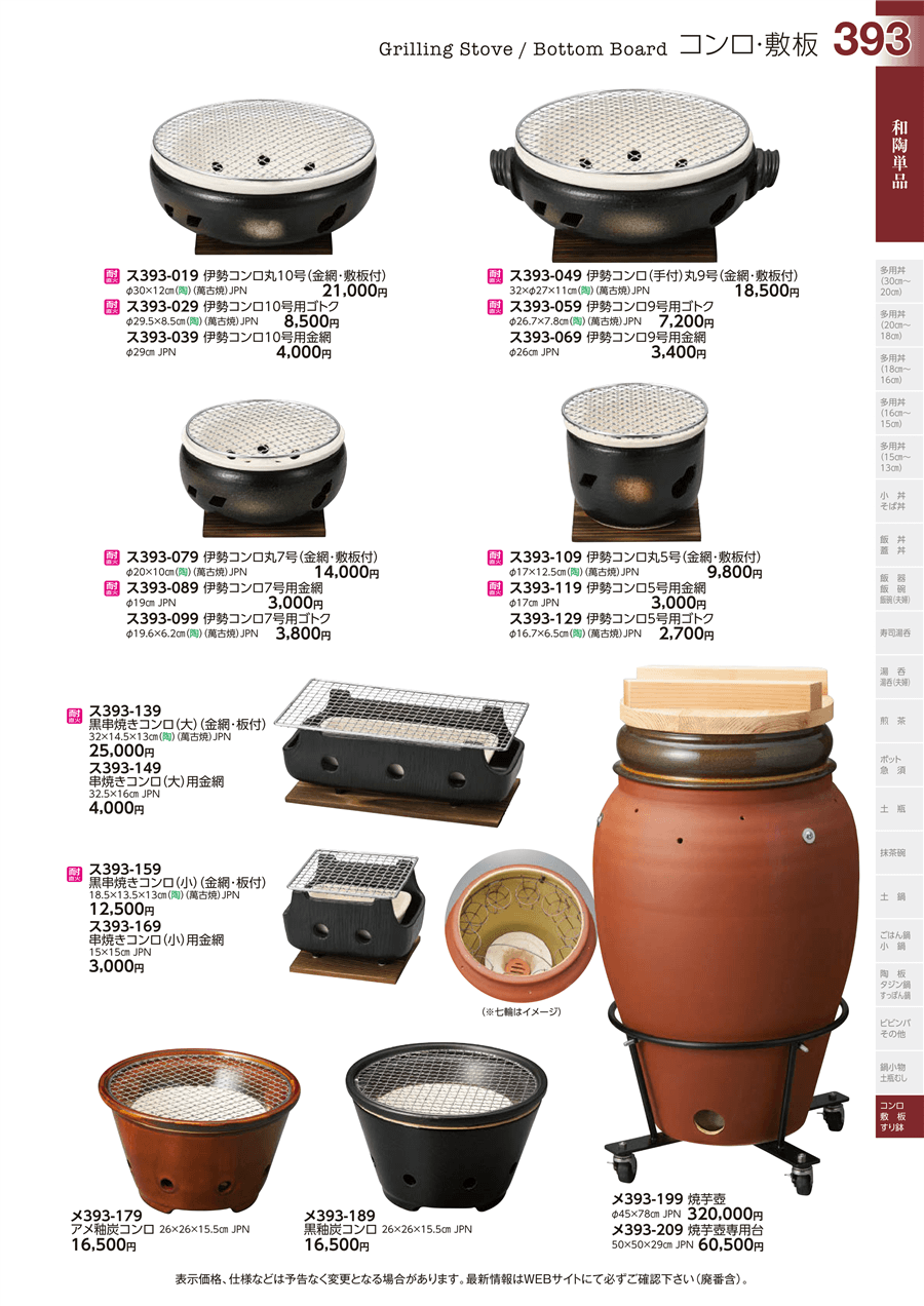 | ス393-079 | 伊勢コンロ丸7号(金網・敷板付) | 上代 14,000円(税抜) 卸値 7,701円(税抜) (45%OFF) | ||