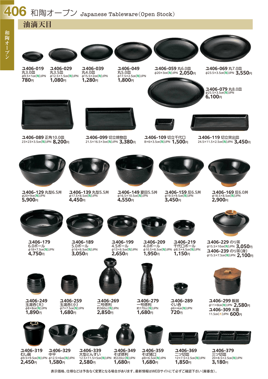 | ユ406-029 | 油滴天目 丸3.5皿 | 上代 1,080円(税抜) 卸値 594円(税抜) (45%OFF) | ||