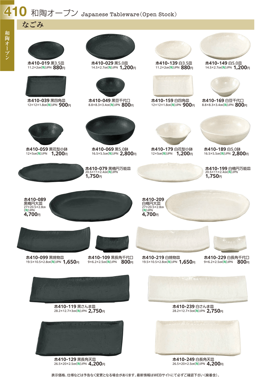 | ホ410-089 | なごみ 黒楕円大皿 | 上代 4,700円(税抜) 卸値 2,585円(税抜) (45%OFF) | ||