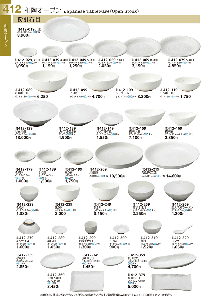 | ミ412-109 | 粉引石目 6.5ボール | 上代 3,300円(税抜) 卸値 1,816円(税抜) (45%OFF) | ||