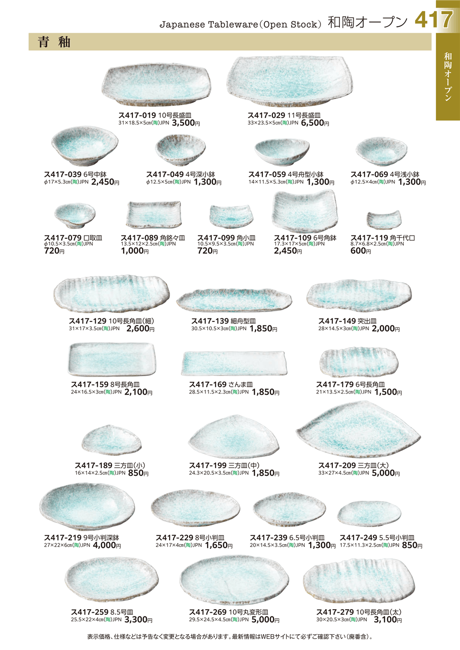 ス417-259青釉 8.5号皿上代 3,300円(税抜)