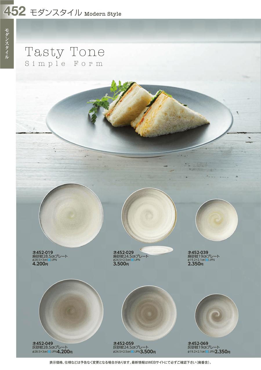 | ネ452-019 | 麻砂紋28.5㎝プレート | 上代 4,200円(税抜) 卸値 2,310円(税抜) (45%OFF) | ||