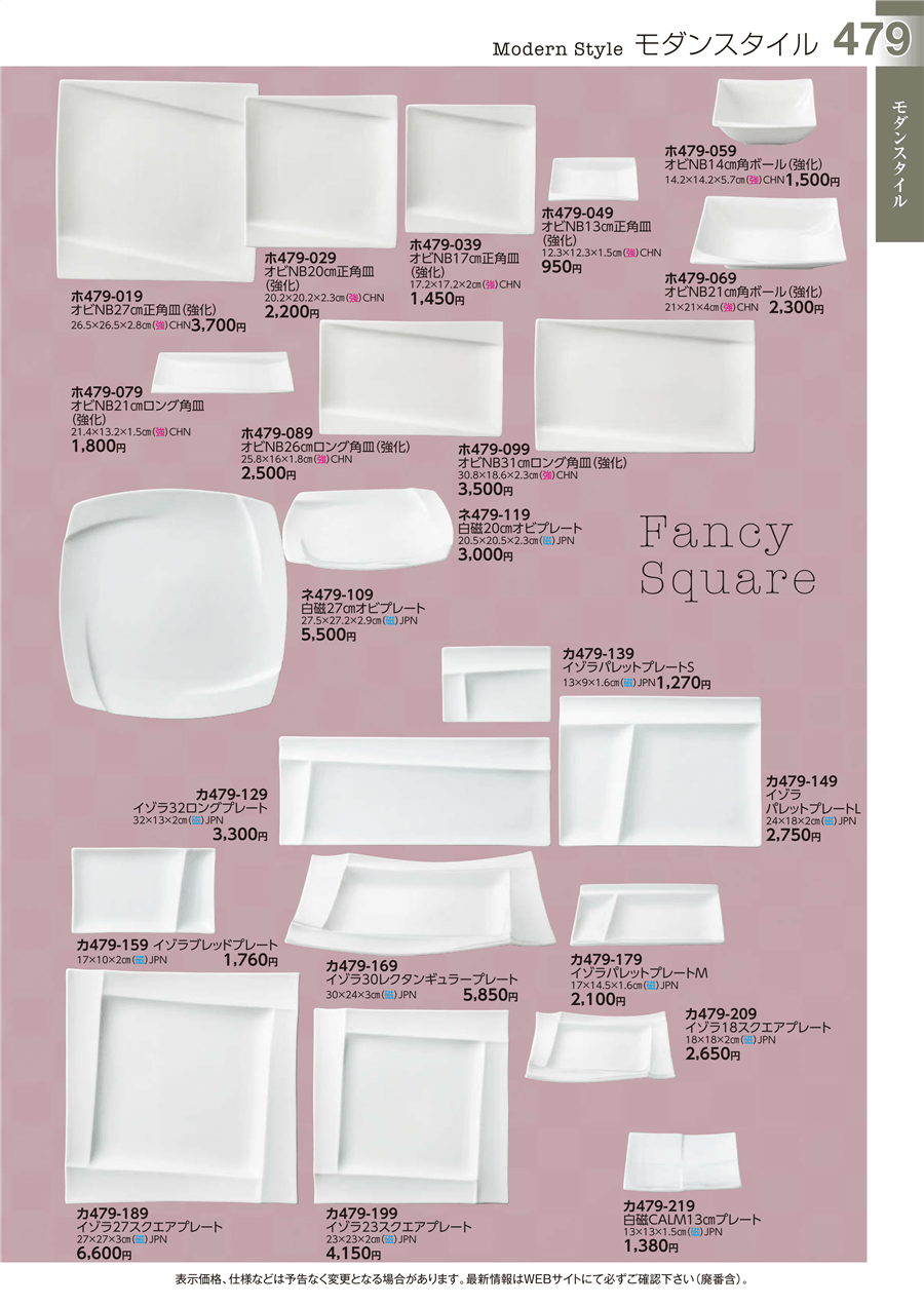 | カ479-189 | イゾラ27スクエアプレート | 上代 6,600円(税抜) 卸値 3,631円(税抜) (45%OFF) | ||