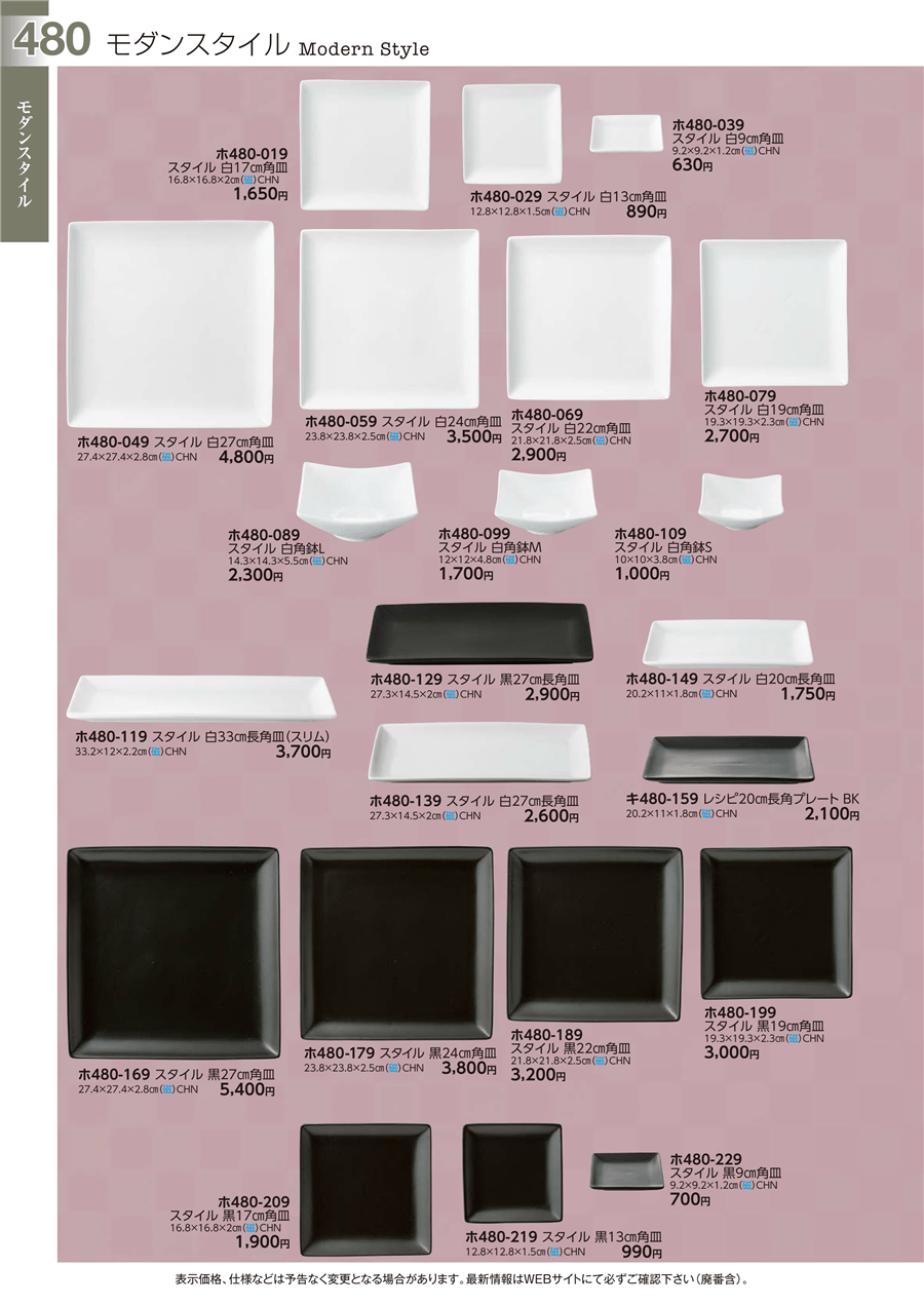 | ホ480-059 | スタイル 白24㎝角皿 | 上代 3,500円(税抜) 卸値 1,926円(税抜) (45%OFF) | ||