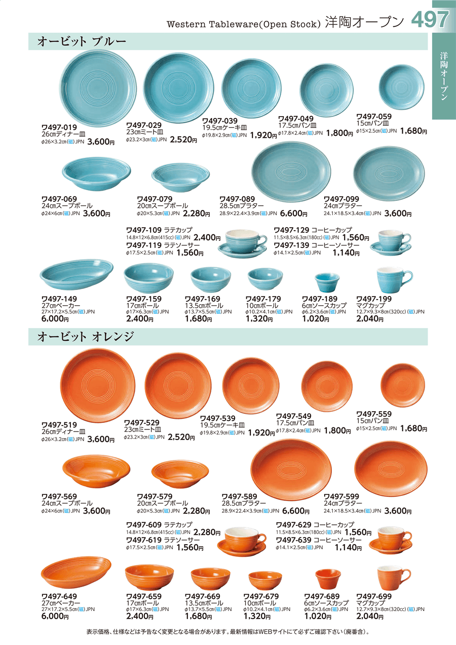 | ワ497-519 | オービットオレンジ 26㎝ディナー皿 | 上代 3,600円(税抜) 卸値 1,981円(税抜) (45%OFF) | ||