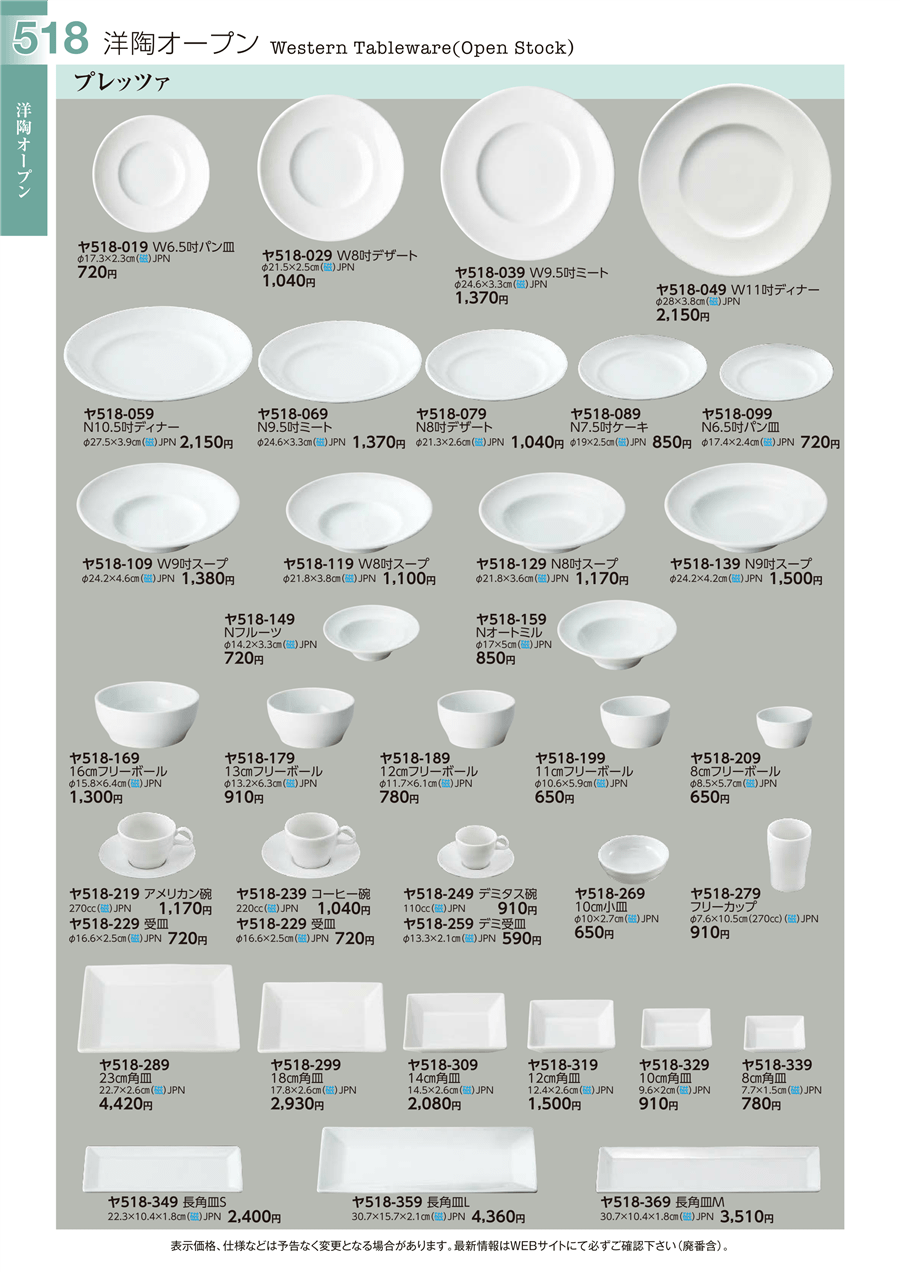 ヤ518-059プレッツァ N10.5吋ディナー上代 2,150円(税抜)
