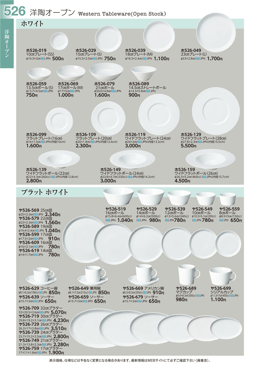 ヤ526-729プラット ホワイト 26㎝プラター上代 3,510円(税抜)