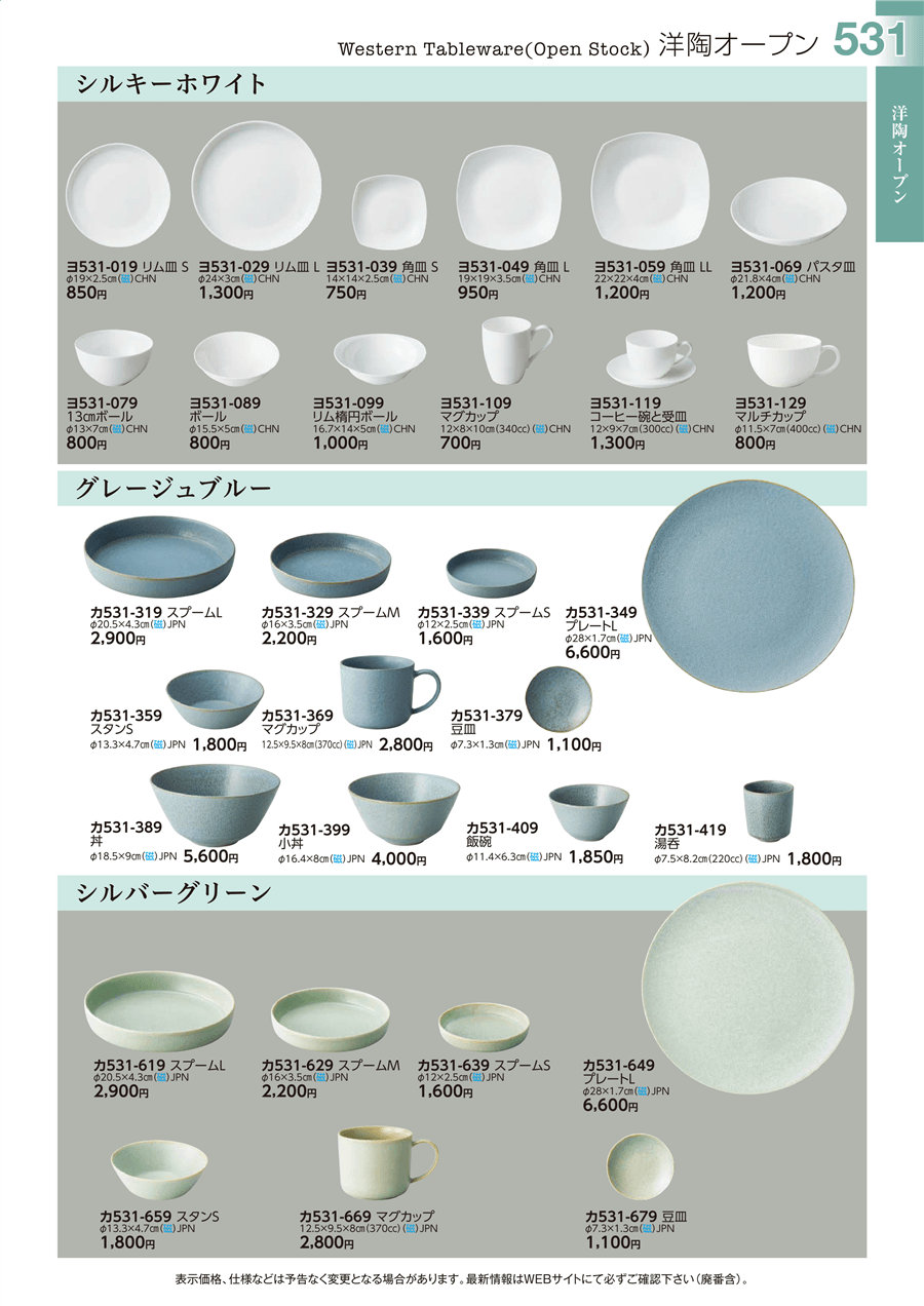 | ヨ531-019 | シルキーホワイト リム皿 S | 上代 850円(税抜) 卸値 468円(税抜) (45%OFF) | ||