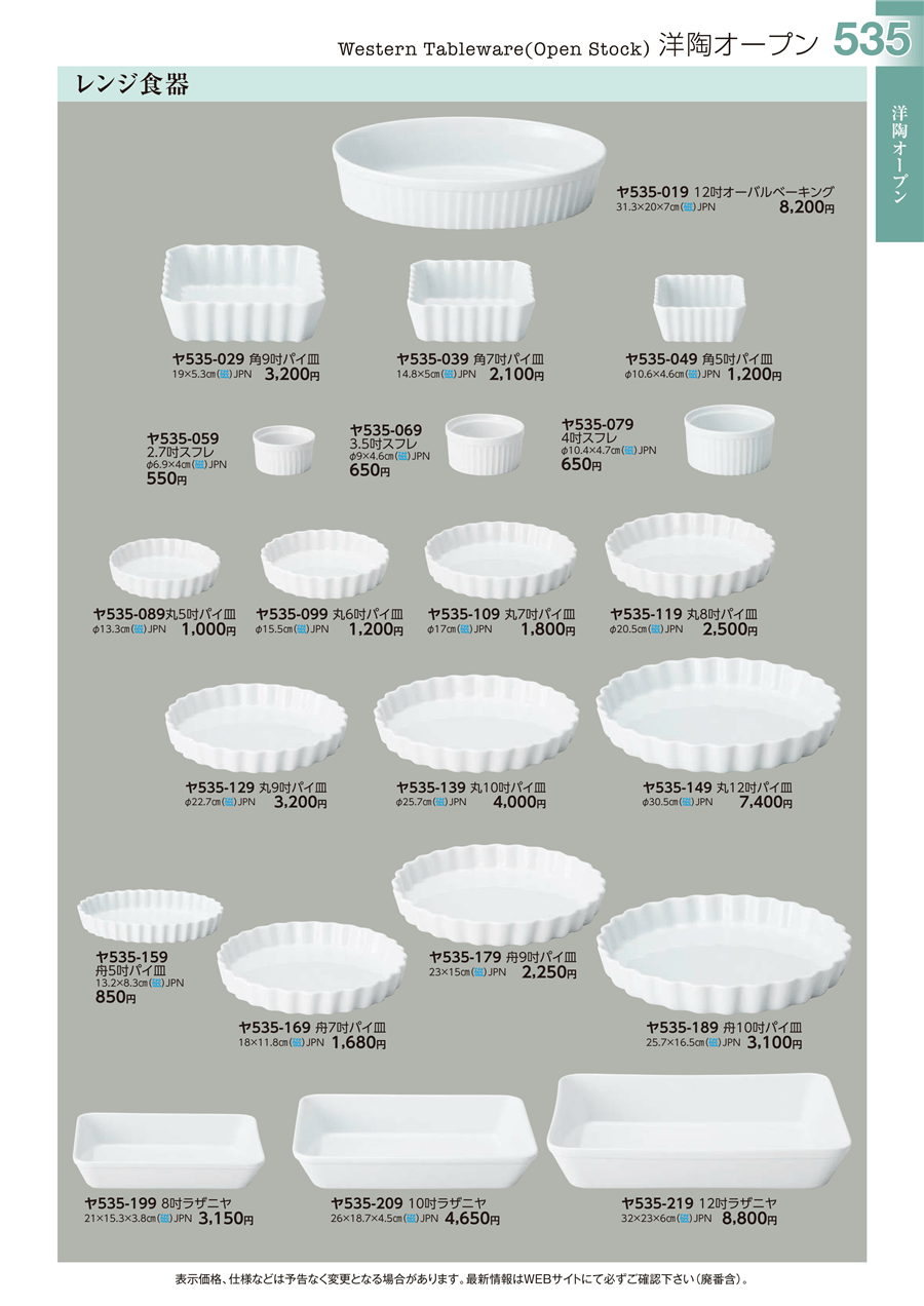 ヤ535-129レンジ食器 丸9吋パイ皿上代 3,200円(税抜)