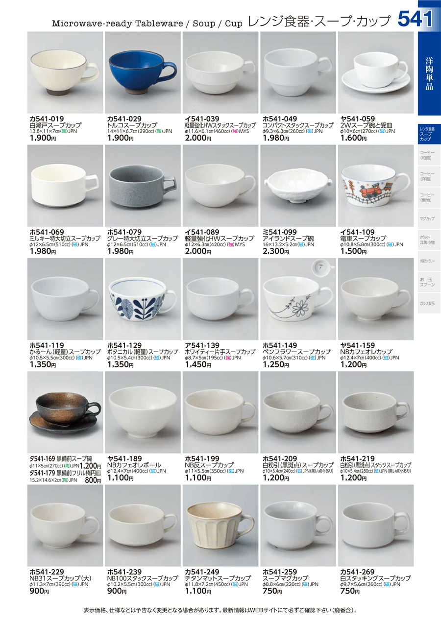 | ホ541-069 | ミルキー特大切立スープカップ | 上代 1,980円(税抜) 卸値 1,089円(税抜) (45%OFF) | ||
