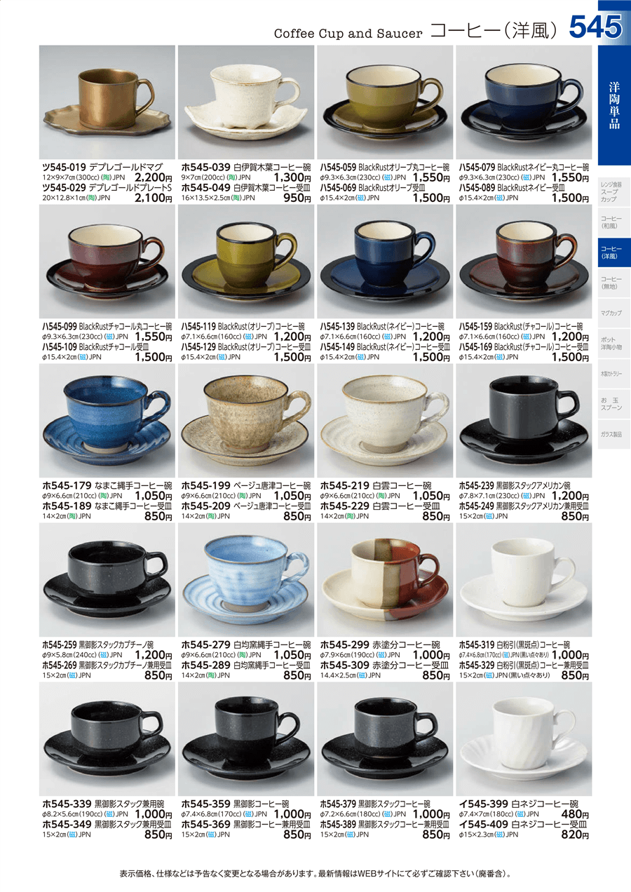 | 原料価格の急激な値上がりにより、画像記載の価格から更新されている場合がございます。 また価格の更新が完了していない商品もございますので、現行の価格は見積もりをもってご報告申し上げます。 | ||||