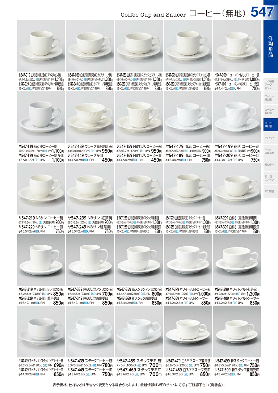 | ハ547-419 | スペランツァスタッキングコーヒー碗 | 上代 690円(税抜) 卸値 380円(税抜) (45%OFF) | ||