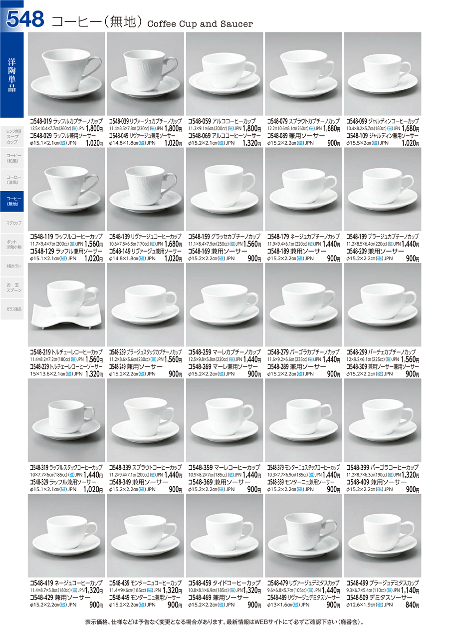| コ548-399 | パーゴラコーヒーカップ | 上代 1,320円(税抜) 卸値 727円(税抜) (45%OFF) | ||
