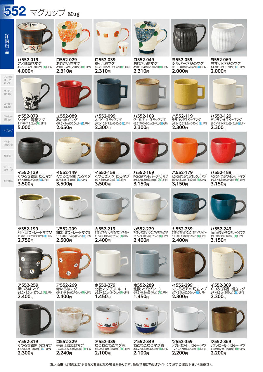 | ロ552-329 | 手造り風志野マグ | 上代 2,240円(税抜) 卸値 1,232円(税抜) (45%OFF) | ||
